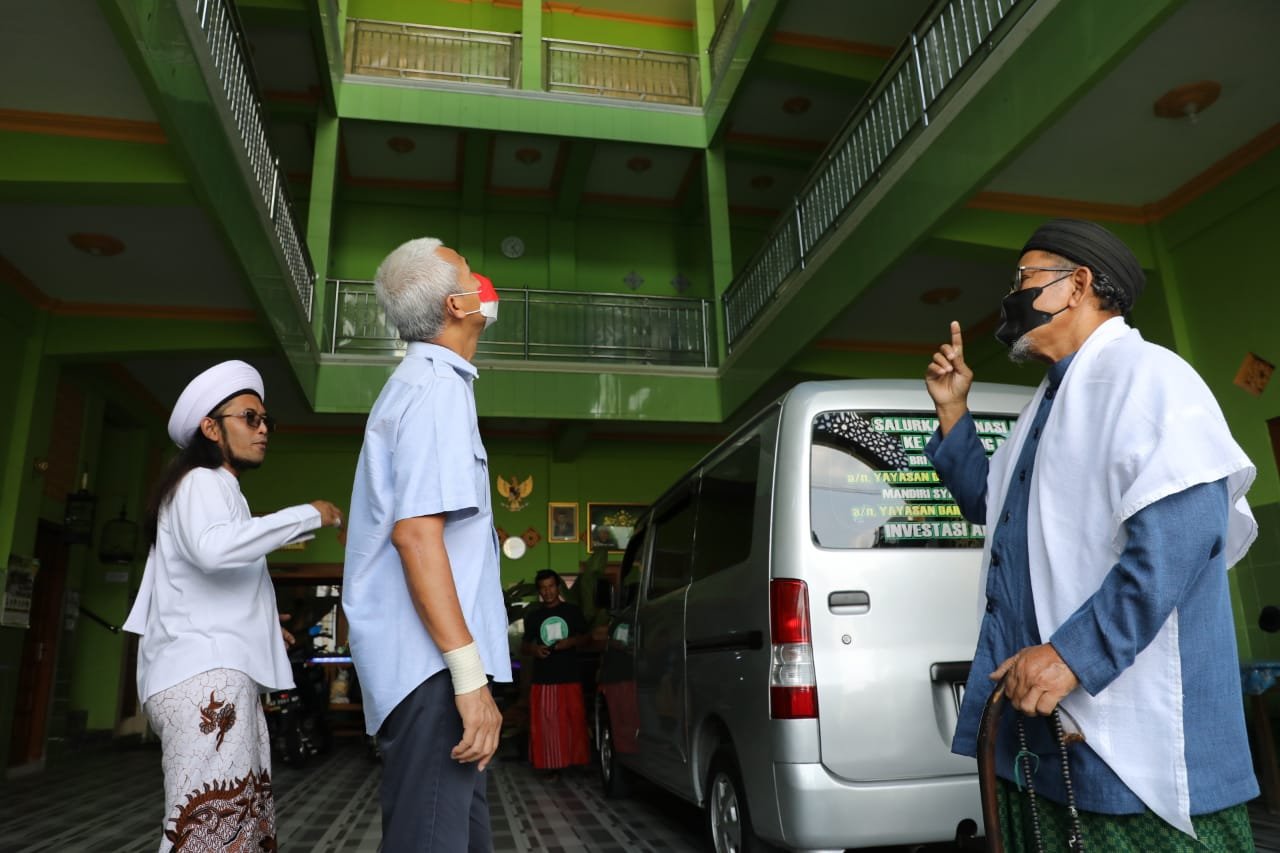“Mari kita doakan Pak Ganjar selalu diberikan kesehatan dan kelancaran dunia dan akhirat,” kata Romo Kiai Sami’an mengajak santrinya mendoakan Ganjar.