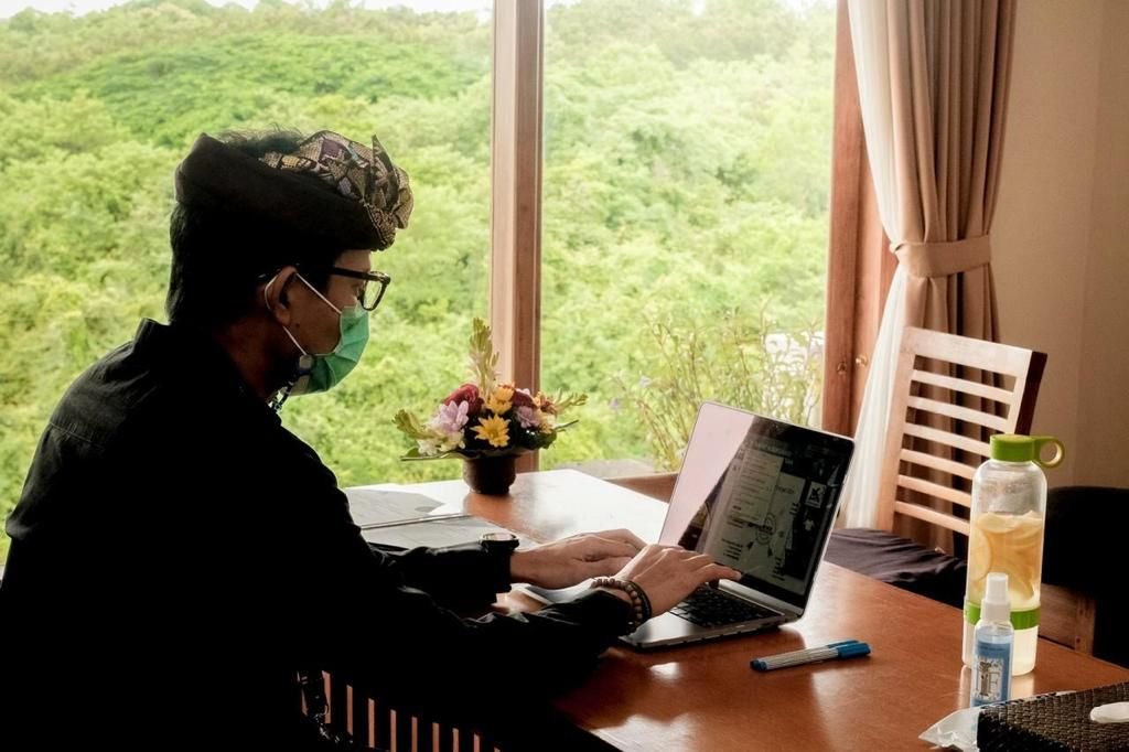 “Saya mengajak kalangan pengusaha dan para profesional mulai mempertimbangkan untuk bekerja dari Bali. Karena ada dua fungsi, yang pertama kita bisa lebih efisien dan bisa menikmati keindahan alam Bali, juga kita membantu sektor pariwisata dan ekonomi kreatif di Bali,” ujarnya.