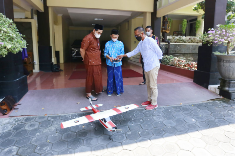 “Saya senang ada santri yang kreatif dan masuk di ekonomi kreatif. Ini sebuah gebrakan inovasi teman-teman santri yang biasanya belajar kitab, tapi saat ini sudah masuk ranah digital. Sehingga ini perlu diapresiasi dan saya membeli satu. Ini sekaligus untuk promosi,” ujar Gus Yasin, sapaan Wagub, seusai menjajal menerbangkan pesawat aeromodeling karya santri di halaman rumah dinasnya, Selasa (7/9/2021).